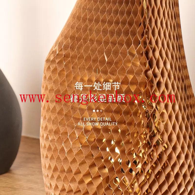 Made from eco-friendly recycled paper, they are formed by corrugating and laminating into a hexagonal honeycomb core, then combined with inner and outer liners to create a sleeve structure.