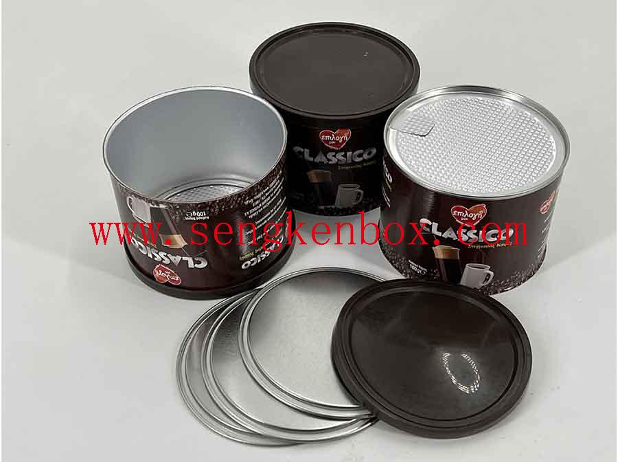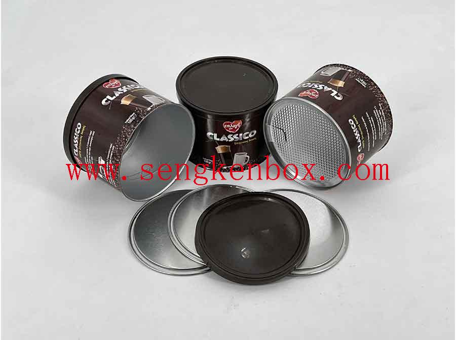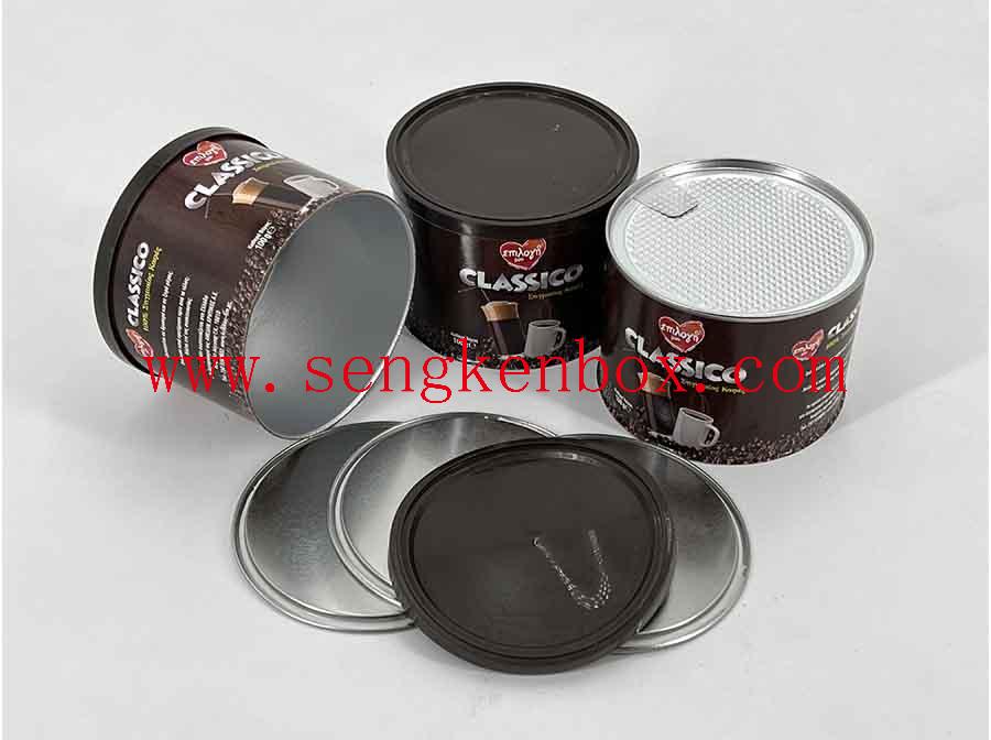 Material: Middle Kraft Paper Core+Inner Coated AL Foil Liner+Outside 157g White Kraft Paper with Printing logo+Glossy Varnishing+Tinplate Ring Aluminum Foil Easy Peel Off Lids for the Small Diameter Classico Coffee Paper Tube