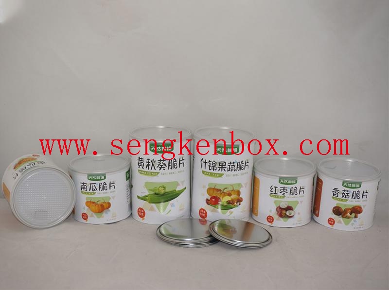 This Snack Chips Food Grade Packaging Paper Cans is for packing seeds,It is a composite food grade canister with moisture-proof aluminum foil liner.