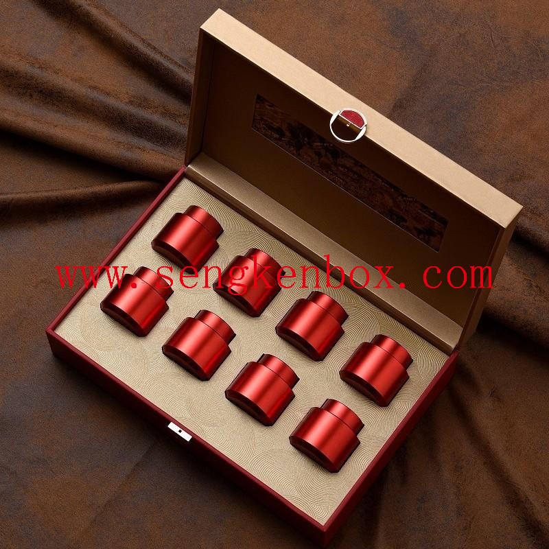 Tea Elegance Series Leather Box 8 Alloy Canister
