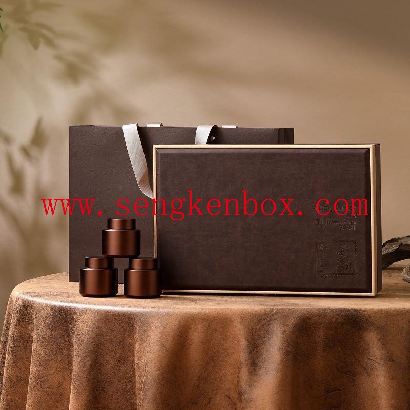 Luxury Leather Gift Tea Box with Sophisticated Handbag and Archaic Ceramic Tea Bottle for Present Packaging
