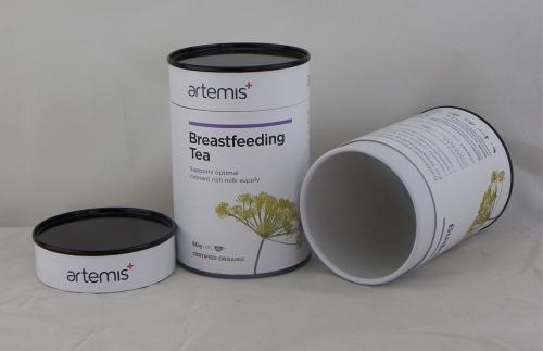 This White Breastfeeding Tea Dust-proof Plastic Cover Tea Cans Packaging is childproof,child is not easy to open it .As top the buckled lid will be tight.It is a composite food grade canister with grease-proof aluminum foil liner.