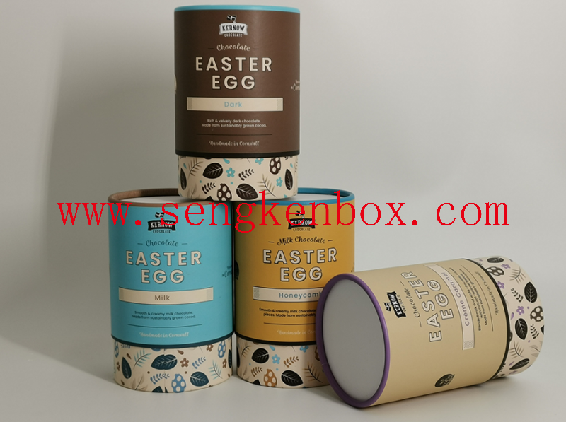 Material: Middle Kraft Paper Core+Inner Coated AL Foil Liner+Rigid Grey Cardboard+Outside 157g White Kraft Paper with Printing logo+Glossy Varnishing for the Two Pieces Rolled Edge Paper Cardboard Cans For Chocolate Packaging