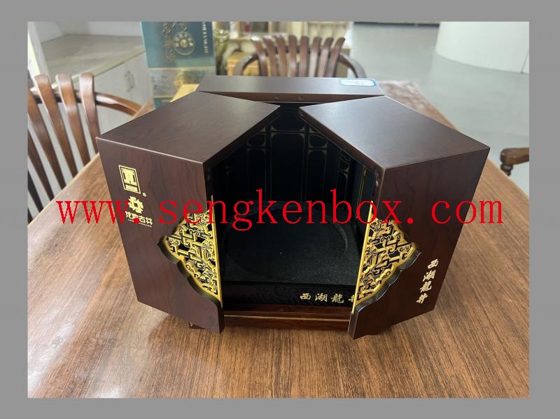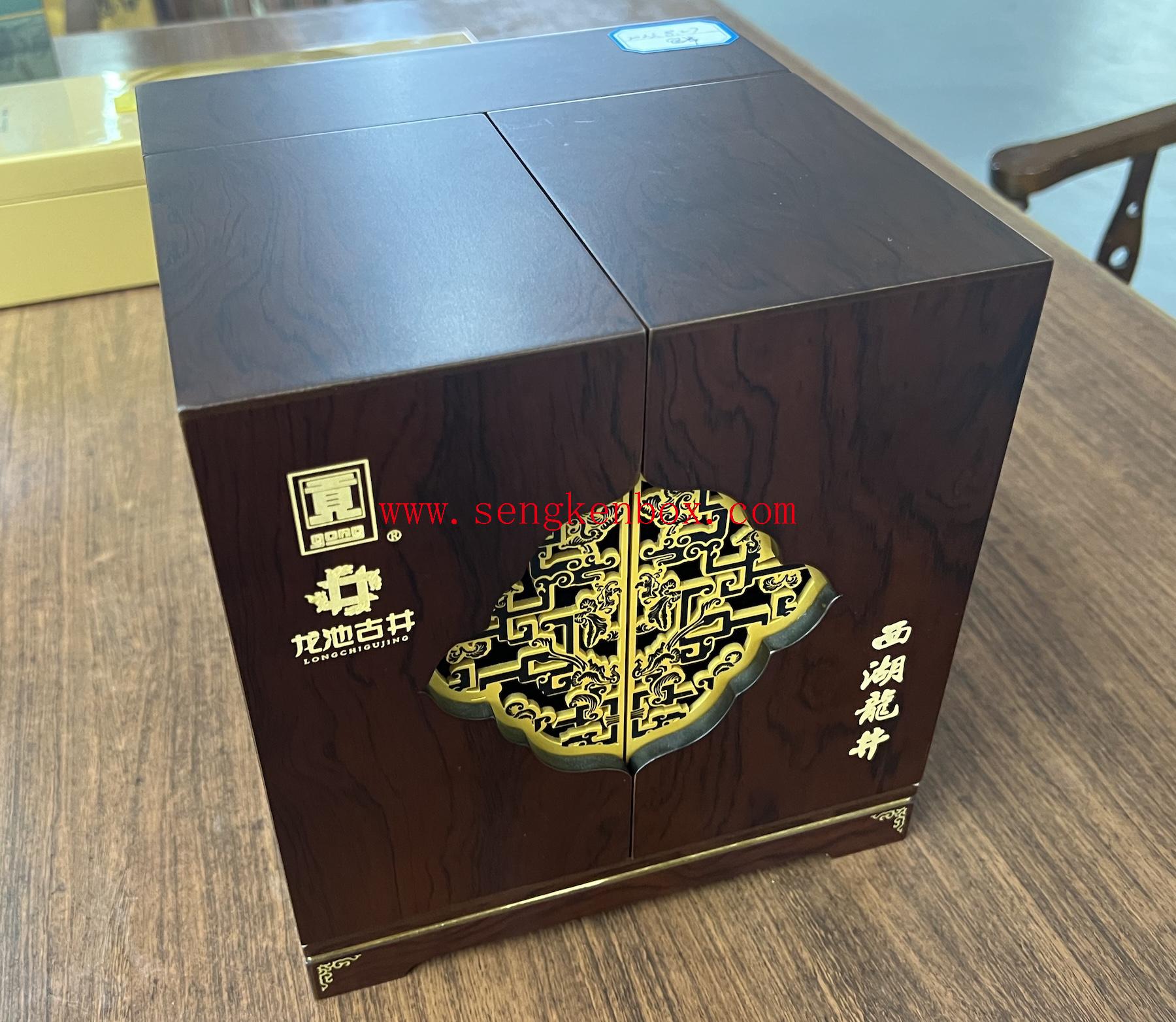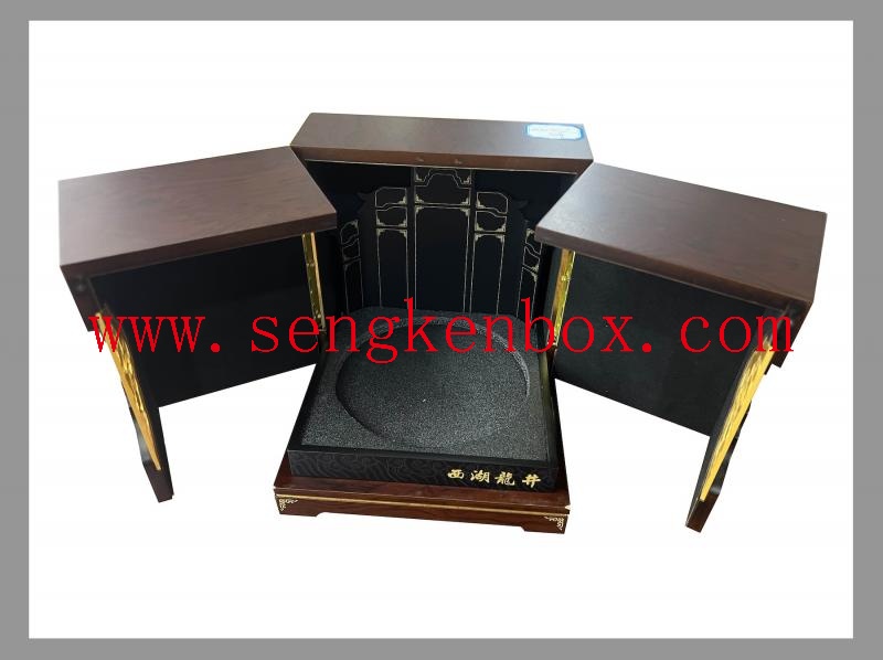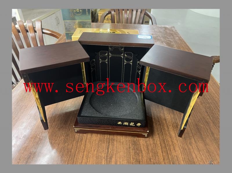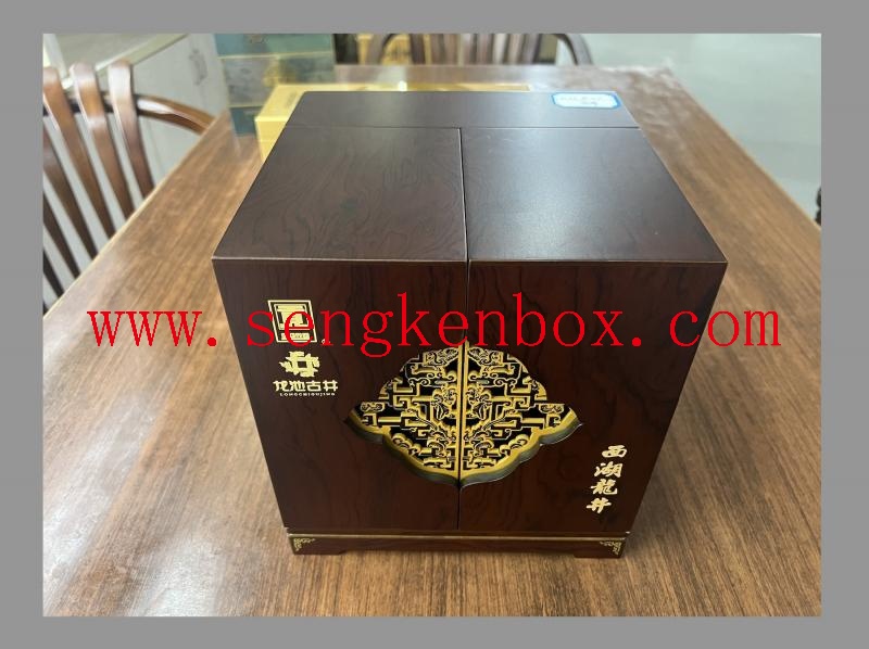 This Vertical Double Door Wooden Display Box is for West Lake Dragon Well Tea or other gift packaging.