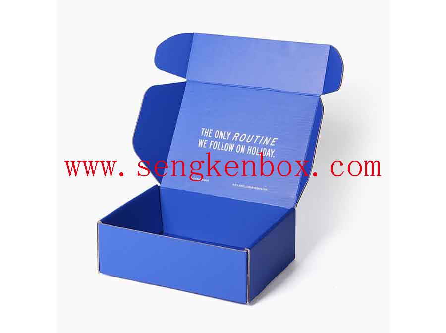 Printing: CMYK+Pantone Color ( As per customer's request) for this Corrugated Navy Blue Packaging Box
