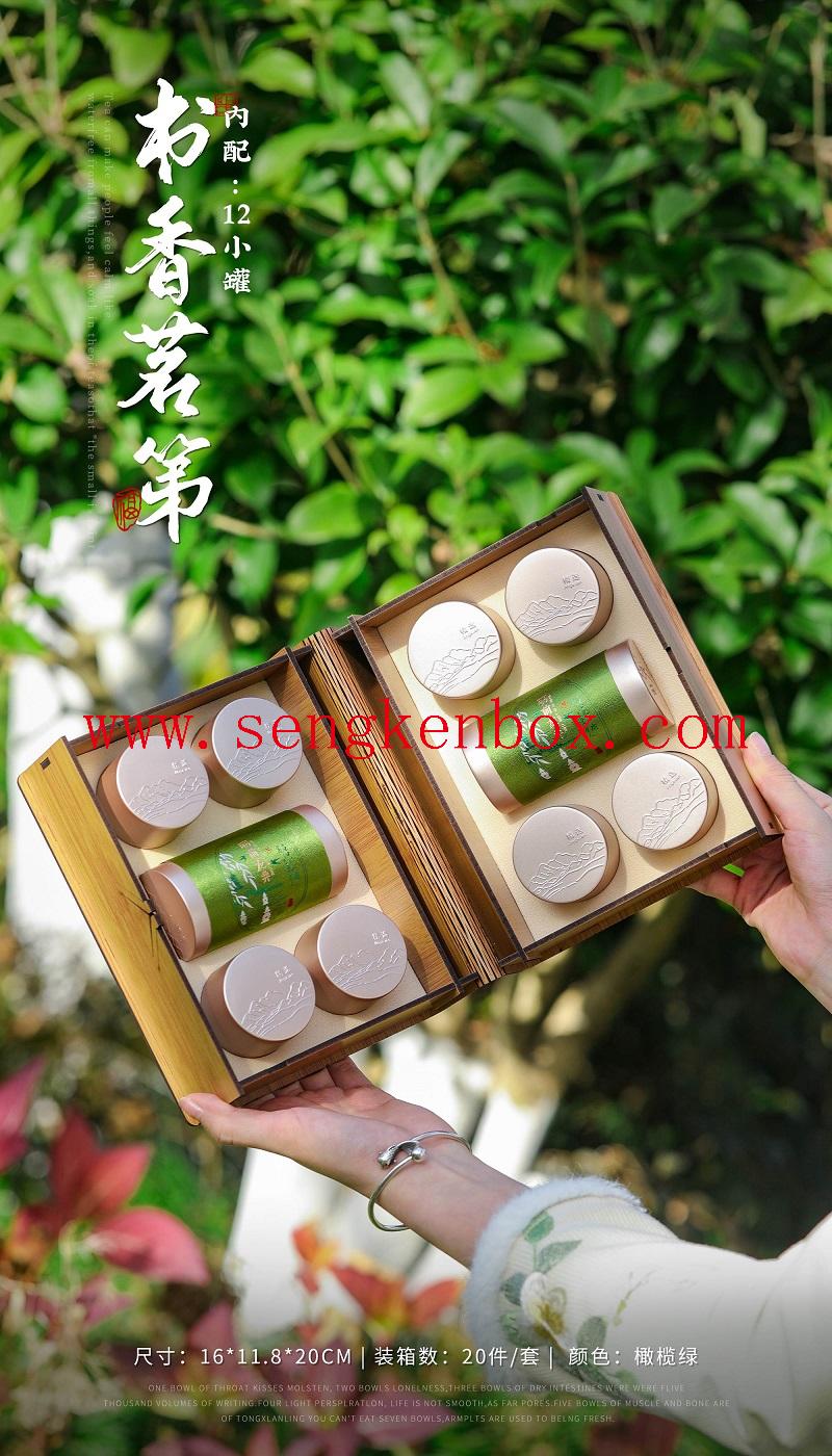 The gift box adopts a double-layer wooden structure, with 12 sealed small cans (including 2 large cans + 10 small cans) inside, which is moisture-proof and fresh-keeping, suitable for green tea, black tea, white tea and other types of tea.