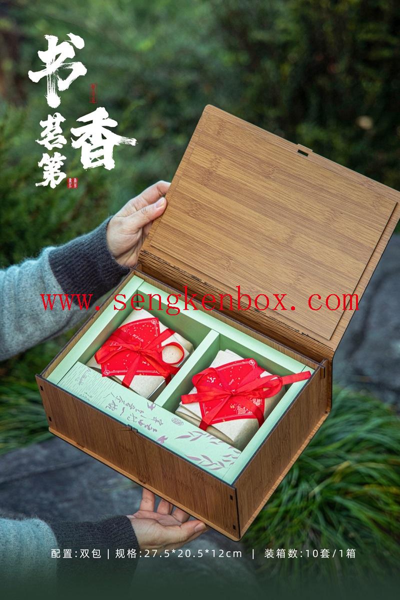 Wooden Tea Gift Box Empty Packaging for Single/Double Pack
