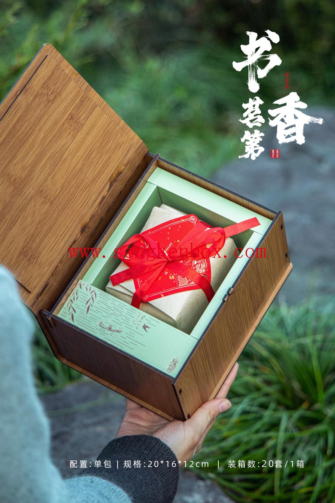 The can body supports logo customization via laser printing or stickers, making it highly suitable for tea shops, food brands, or as gift packaging. It is a cost-effective choice to enhance product quality.This "Shuxiang Mingdi" tea gift box features a book-shaped appearance made of bamboo-patterned wood, paired with a Chinese-style hollow window design.