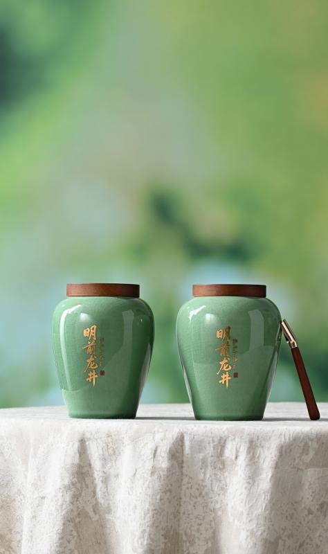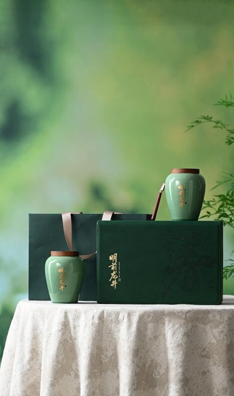 Waking Spring Series Pre-Qingming Longjing Tea Gift Set (Leather Box with Double Ceramic Jars).