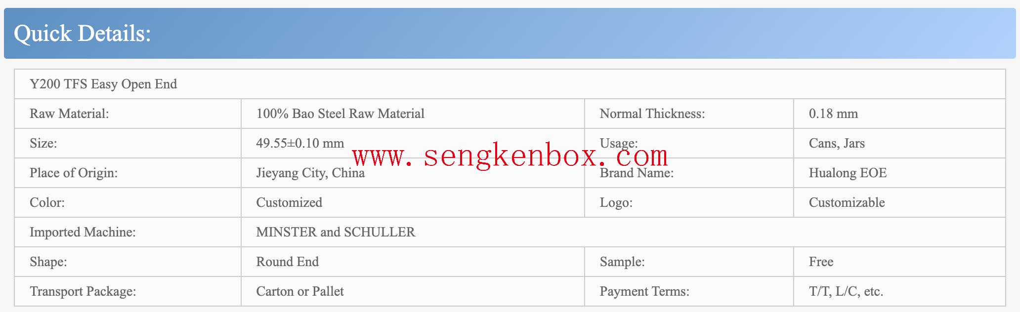 This Y200 50mm TFS Easy Open End with Epoxy Phenolic Lacquer is food grade and tin free steel,they are used in different cans.
