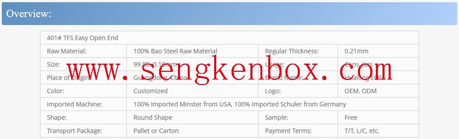 TFS Easy Open End : 200#,202#,209#,211#,214#,300#,304#,305#,307#,311#,315#,401#,502#,603#,902#
