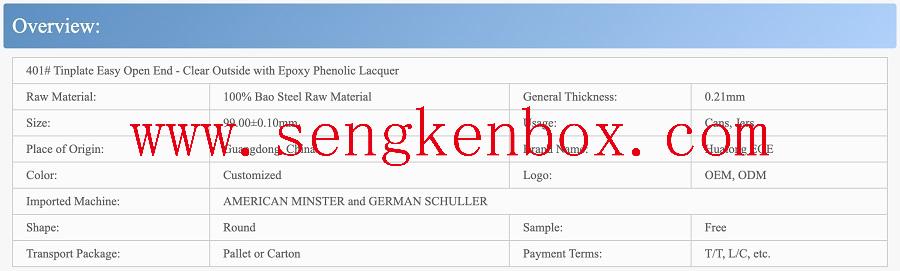 This Y200 50mm TFS Easy Open End with Epoxy Phenolic Lacquer is food grade and tin free steel,they are used in different cans.