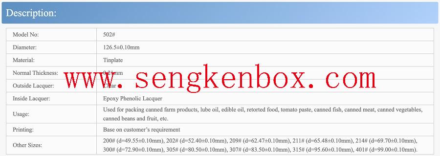 This Round Shape Tin Box With Easy Open Tin Lid is food grade and tin free steel(TFS),they are used in different cans: tomato paste,cans meat,sea fish, tuna etc.
