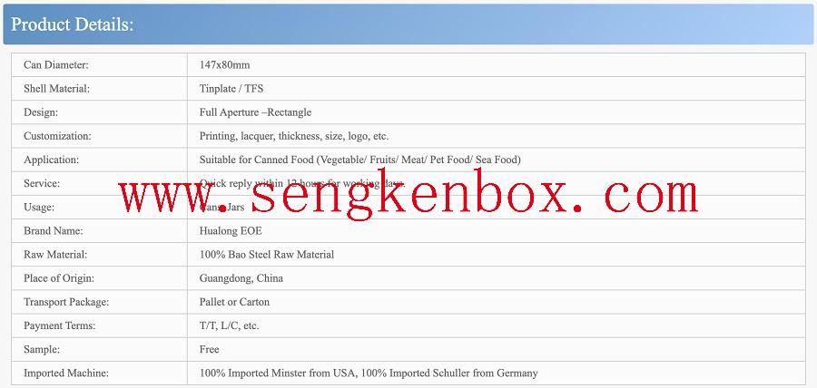 Depends on the quantityY902 147x80mm HANSA Tinplate TFS Easy Open End